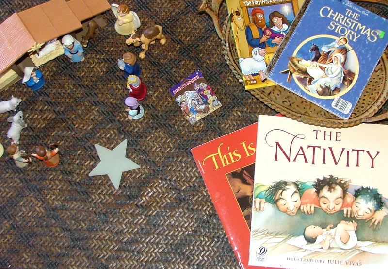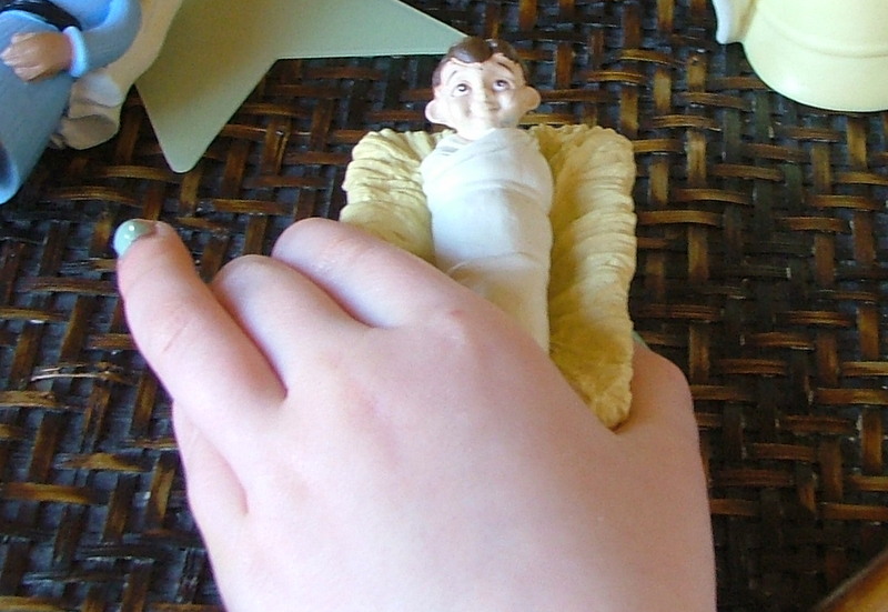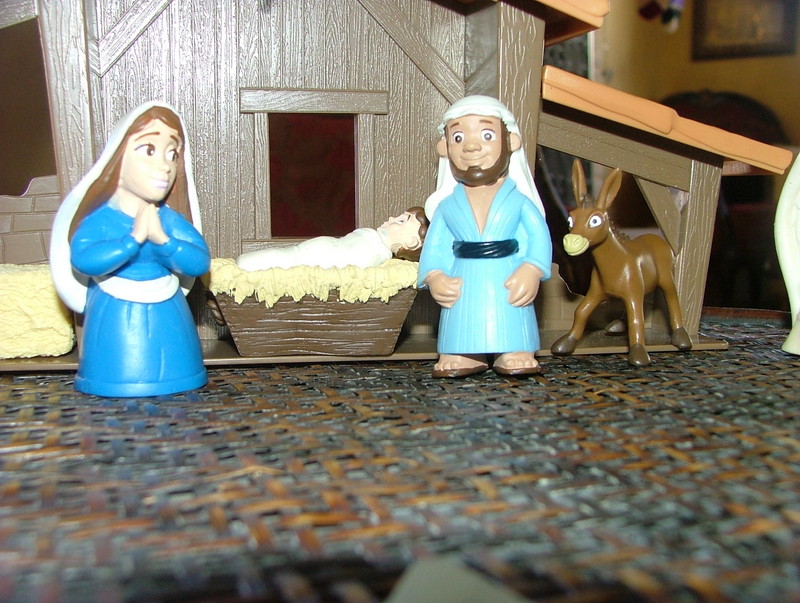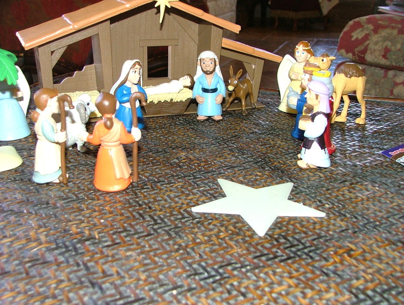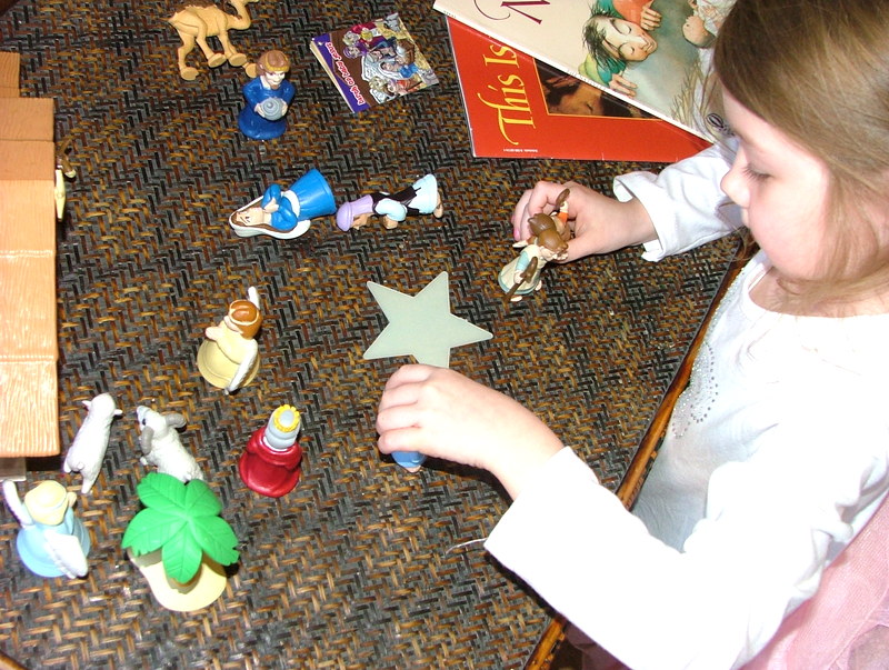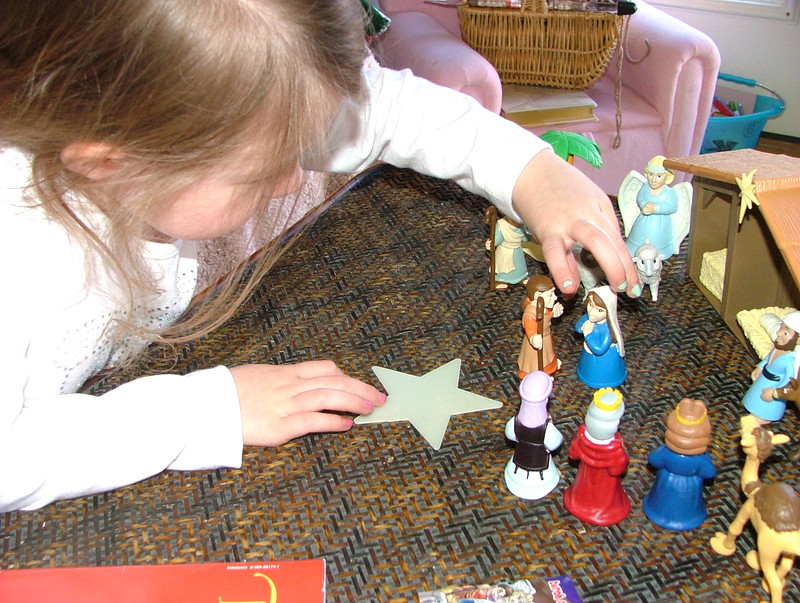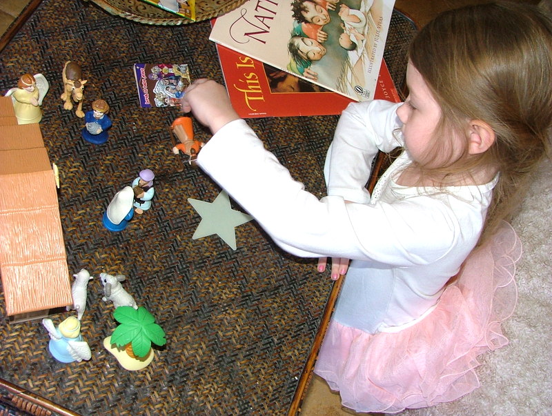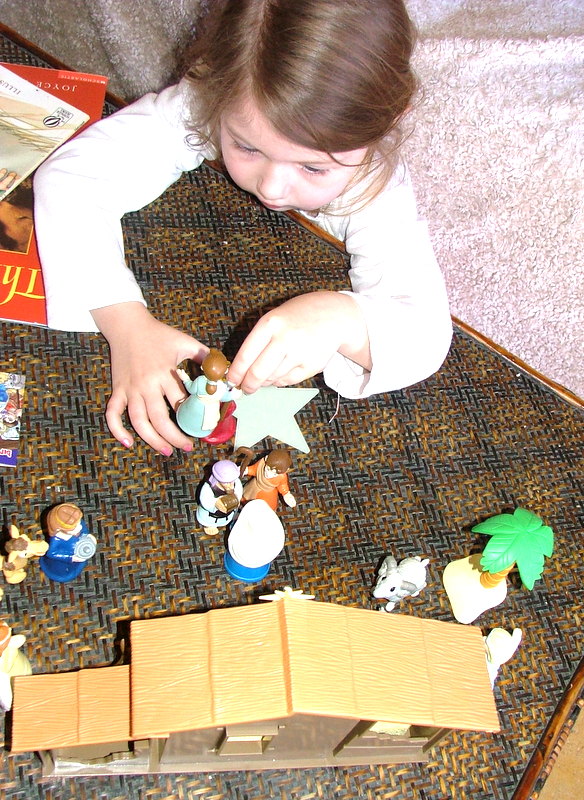 As we read the different stories on the Nativity to Aria, she play acts them out with one of the several Nativity sets we have. We do this often!