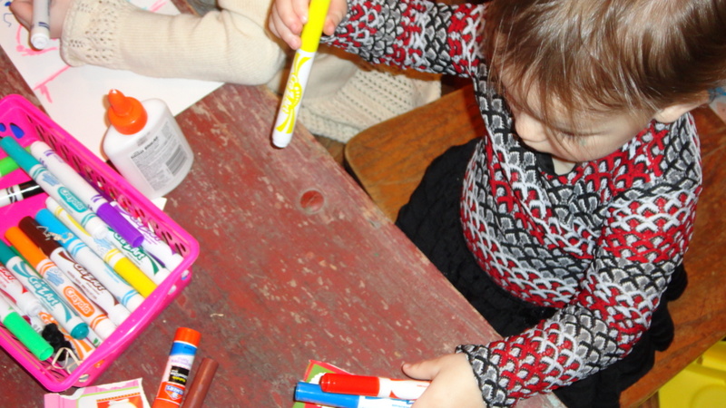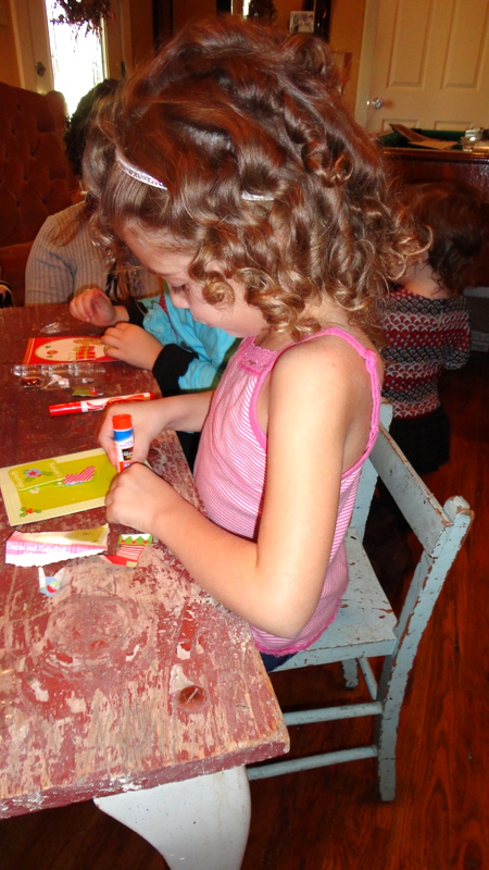Light hearted conversations are overheard as they chat among themselves as they diligently work with markers, glue and sparkly embellishments.