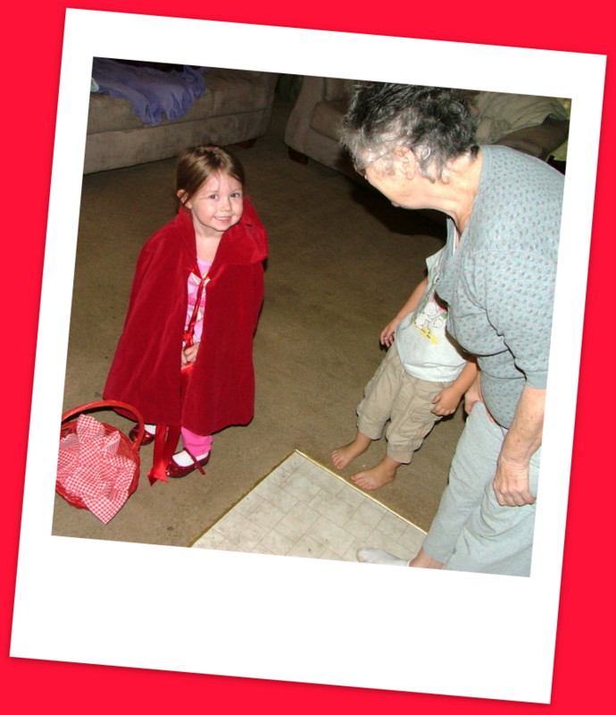 Little Red Riding Hood got there just in time to save grandmother from the big bad wolf!