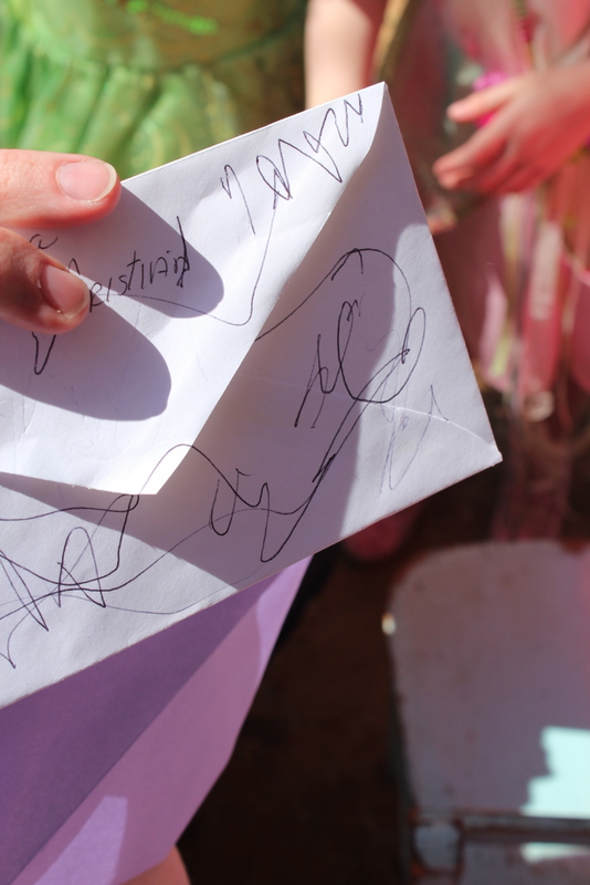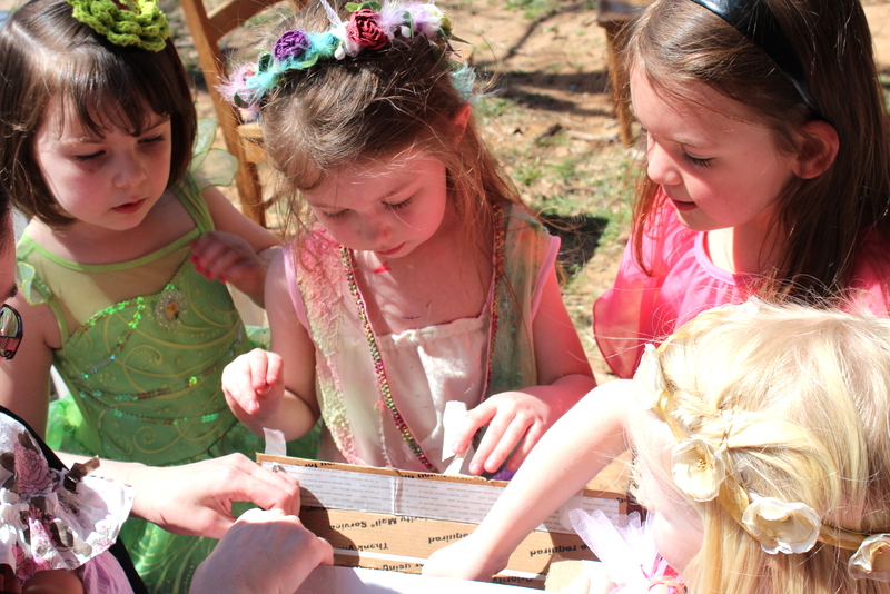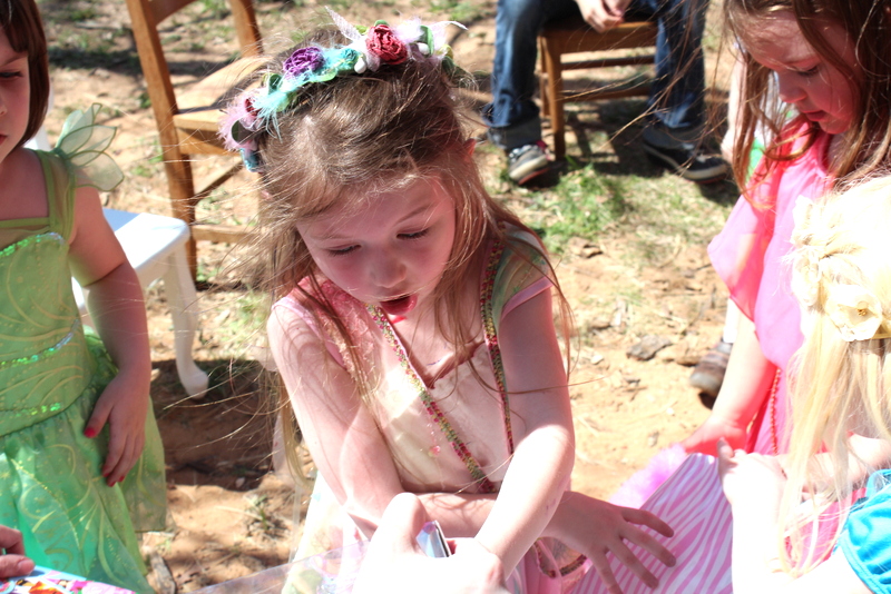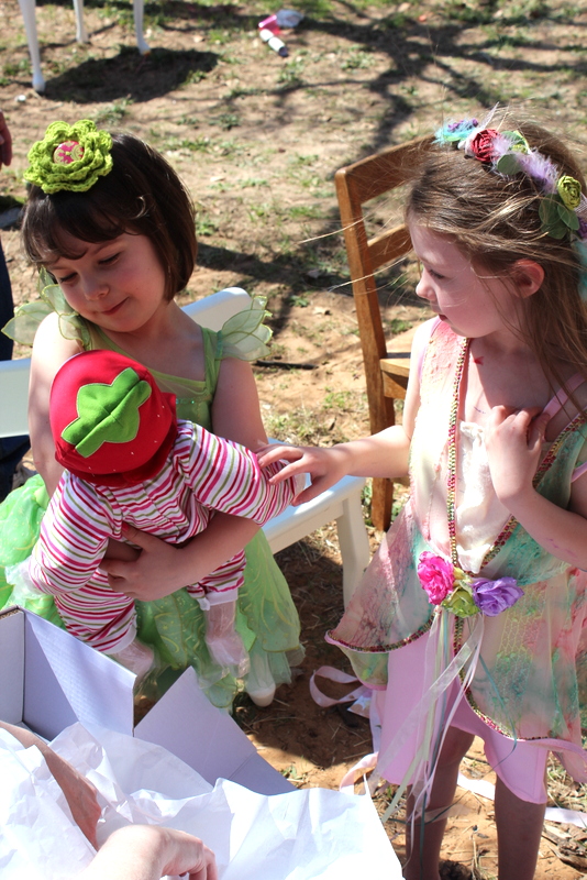 And finally the gifts are opened in the garden with all the fairies gathered around.