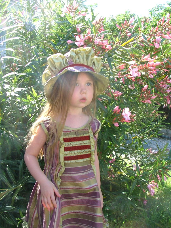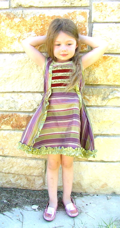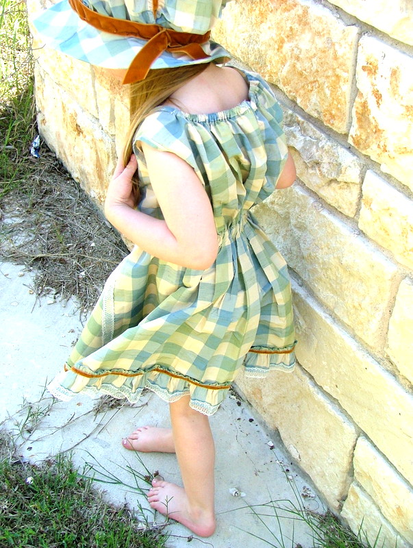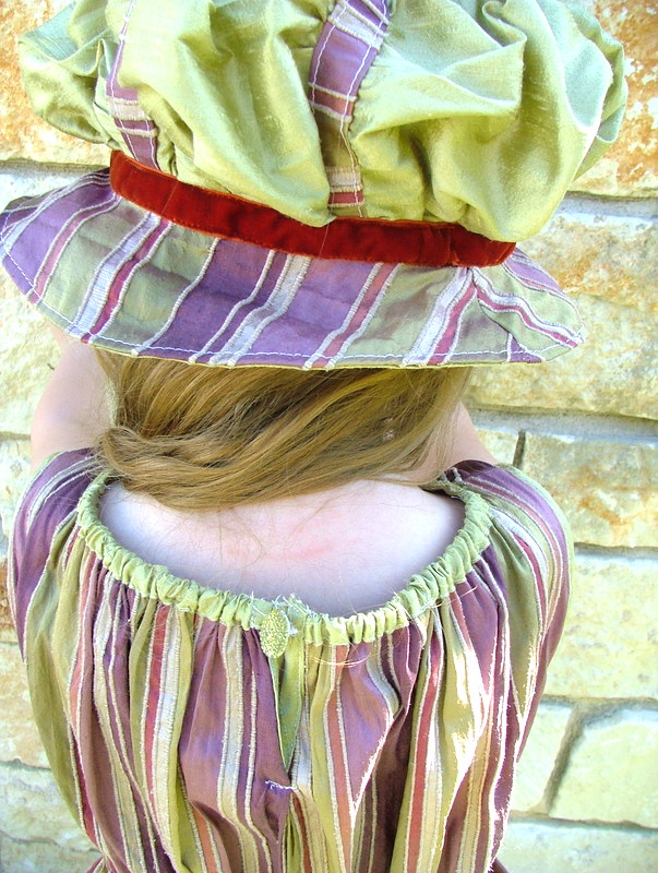 For both dresses I used a silk blend fabric and vintage velvet ribbon that I purchased at antique shop in Ft. Worth..