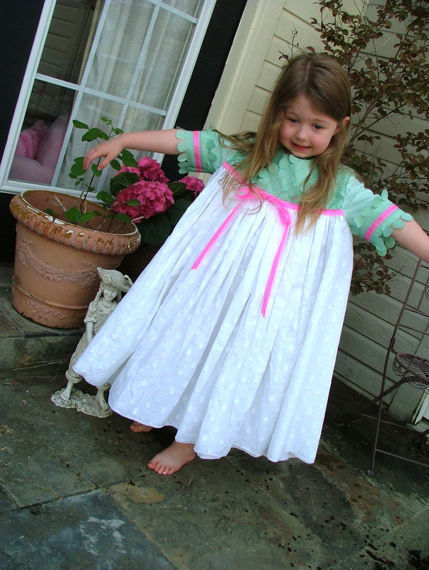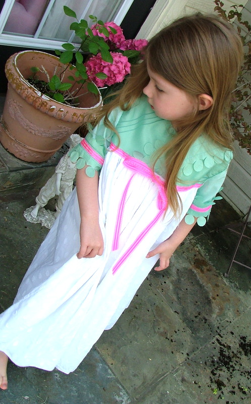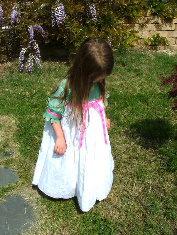 What I didn’t like about it is the sleeves are sewn into the bodice and the skirt, so when she lifts her arms it spreads out and looks huge.