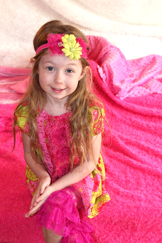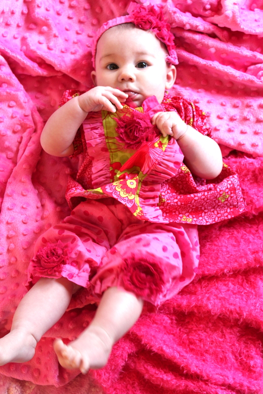Aniyah’s main color is the smaller print and I used the green with pink flowers for her inset.