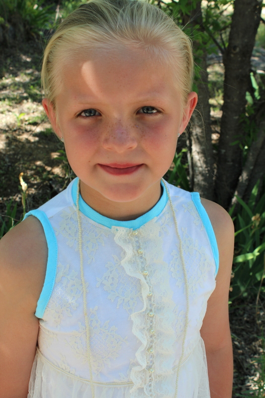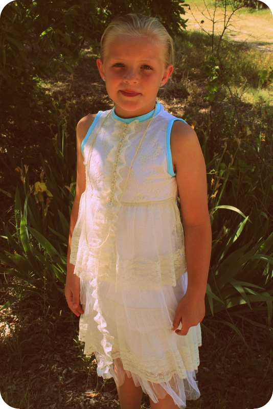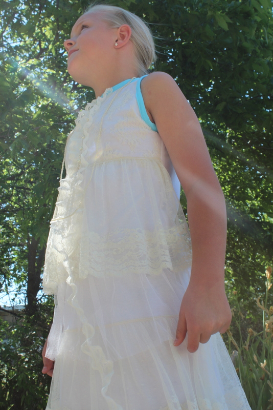 I made the dress out of a white cotton knit, covering the bodice with an off-white lace overlay.