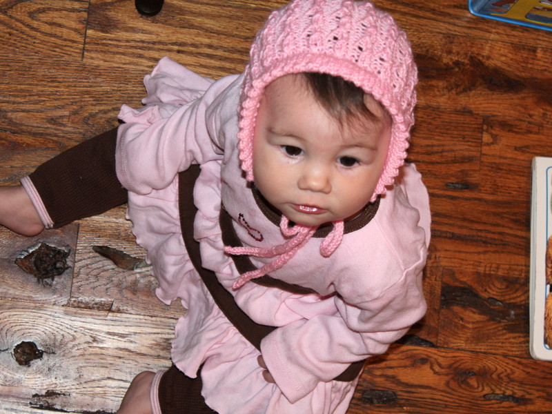 I love this little baby bonnet by Knitted Bliss. And it’s free!!