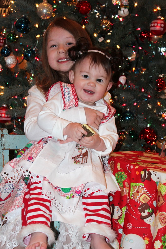 Aria’s top is a purchased T-shirt and Aniyah’s is a purchased onesie.