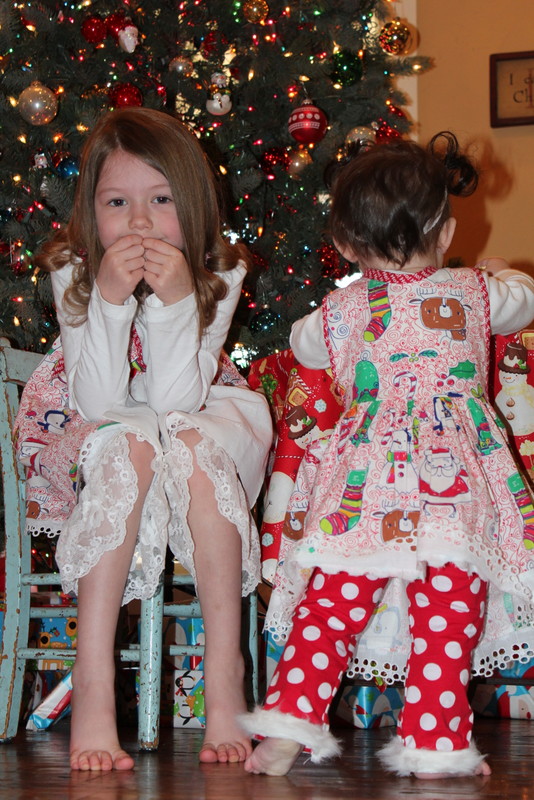 It all started with a half price tea towel that I found at Hobby Lobby. Since I was making the girls matching outfits I needed two towels, I got both of them for $8.