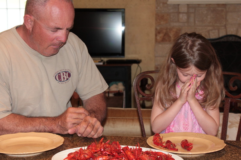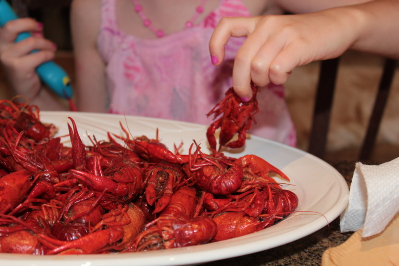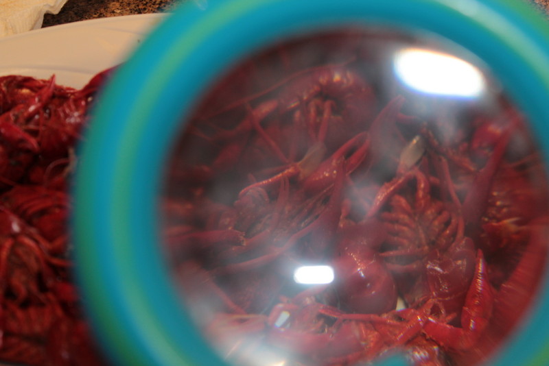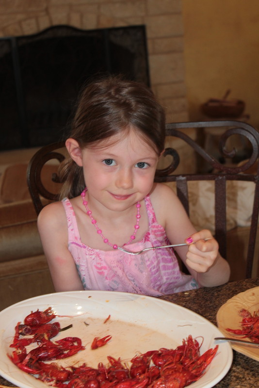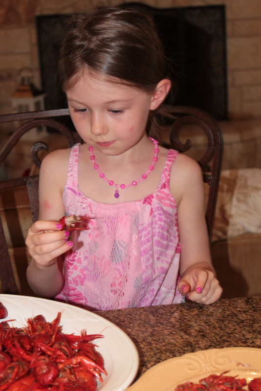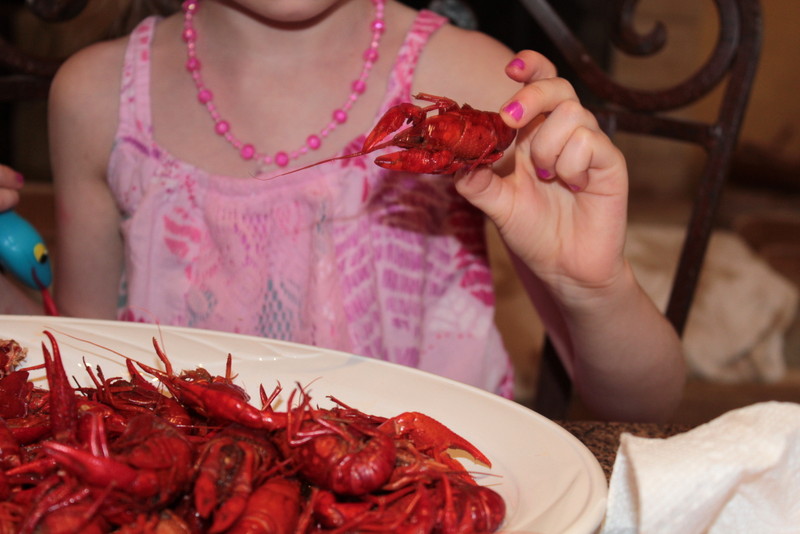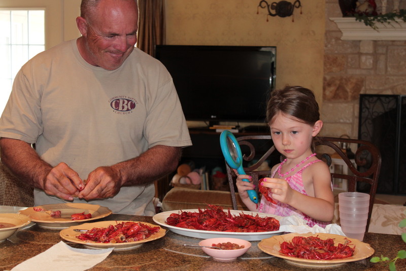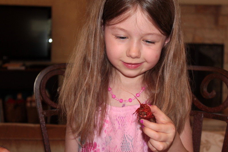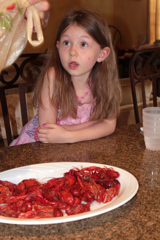 Brookshires in Bridgeport had a crawfish boil, so gumps loaded Aria up and set off for town. She was able to see and play with the crawfish before they met their doom, and soon, they came home with dinner in hand . . . yep, two pounds of crawfish!