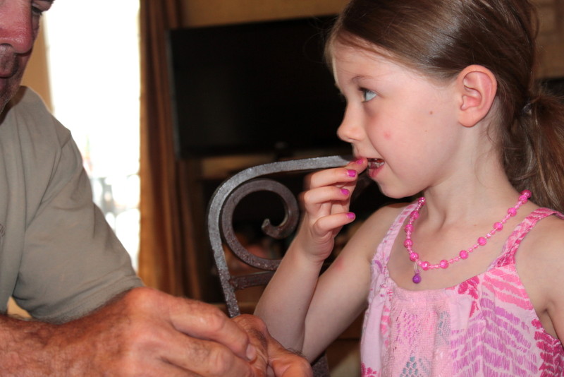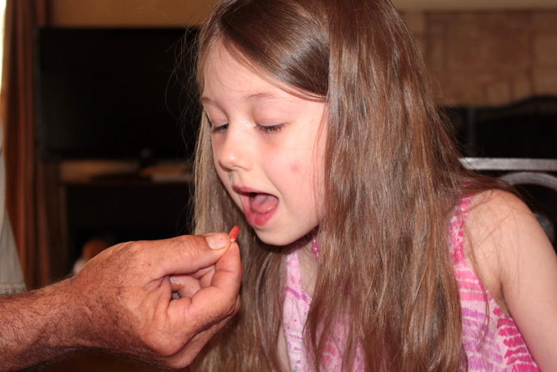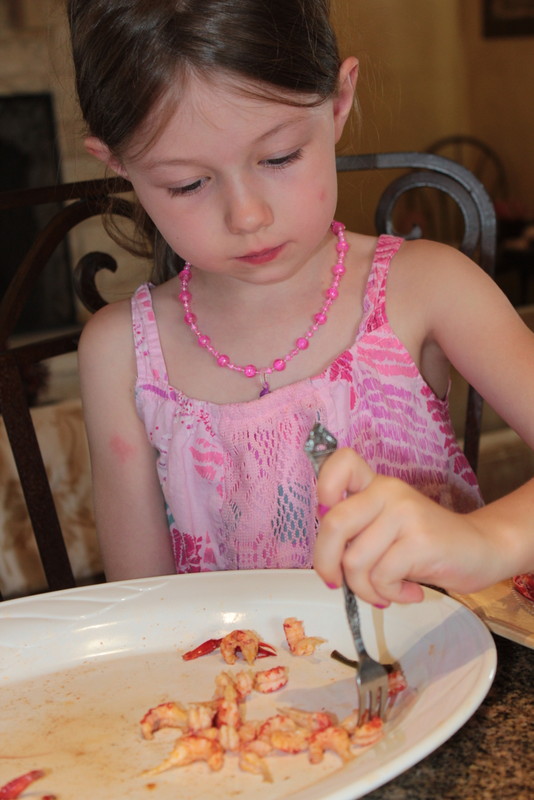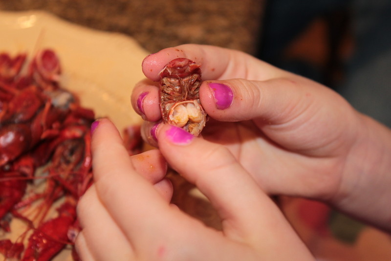 At first, she wasn’t quite sure of these creepy little critters. She watched her gumps closely, asking questions, and eyeing every move he made as he ripped them apart and shelled them for just a tiny little bit of meat.