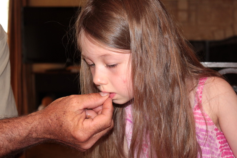 Gumps fed her her first bite, and as she slowly chewed her eyes told us she was mulling it around in her thoughts, deep thinking it through.
