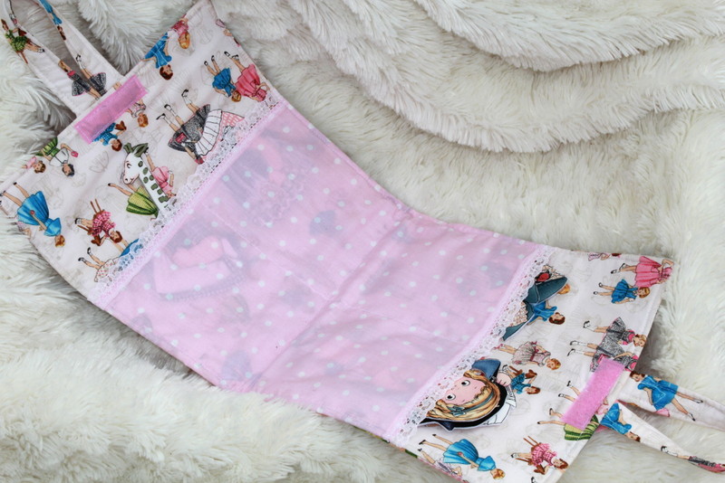 For quiet play there is a fabric paper doll with her own wardrobe that tucks safely into a carry case that closes up with Velcro and can easily be carried using the fabric handles.