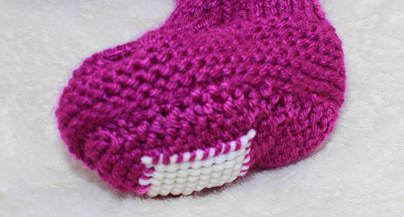 I have written a post about the knitted booties before. A extensive search brought me to this pattern after I saw a pair on line for $48. I have knit several pair of these sweet little booties. I have added a skid free patch on the bottom of the sole to keep little feet from slipping and falling.