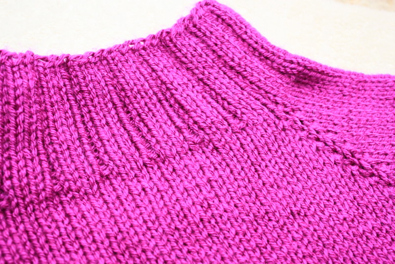 The sweater is a turtle neck with a ribbed collar and bottom ribbed edge.