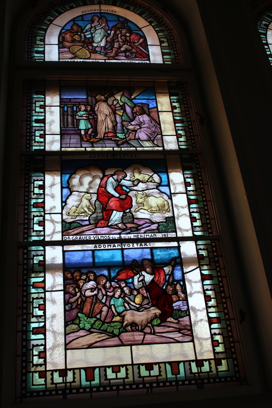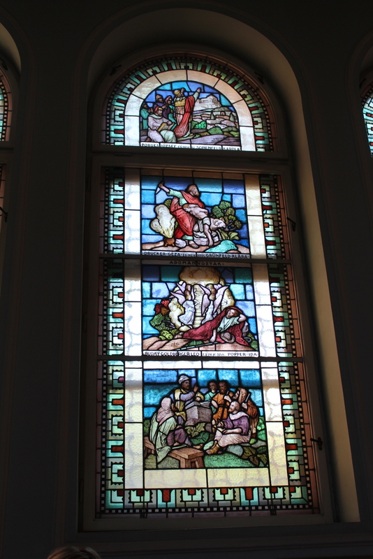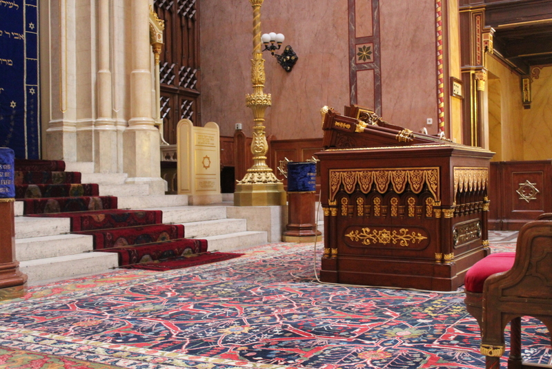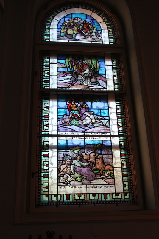 The ceilings are covered with the star of David, and there is a room of stained glass windows, each tells a story from the bible.