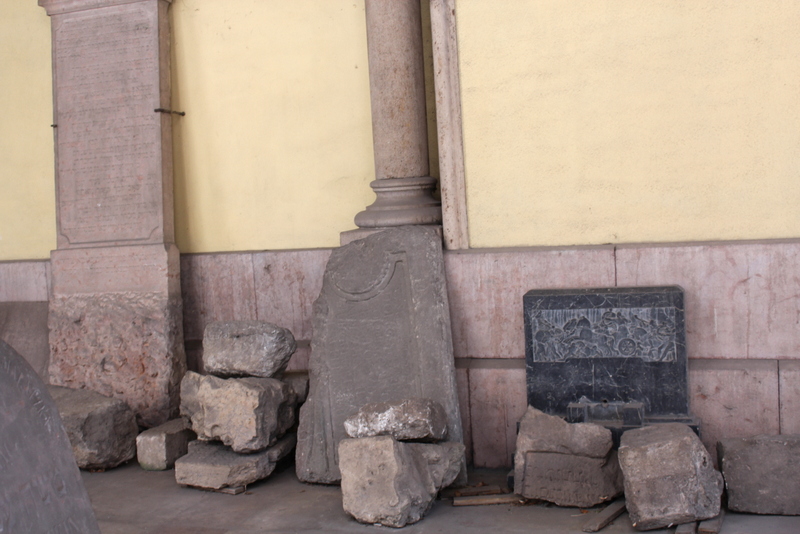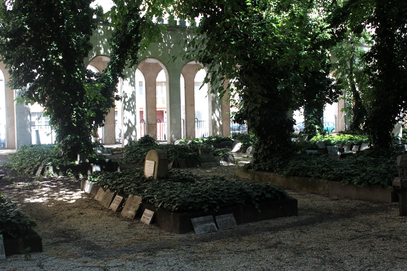 At the back of the courtyard is a memorial for it is the burial ground of 2,281 people who had died in the ghetto. The ghetto is located just directly behind the synagogue.
