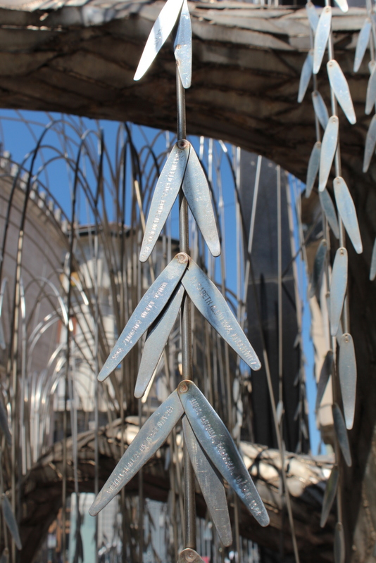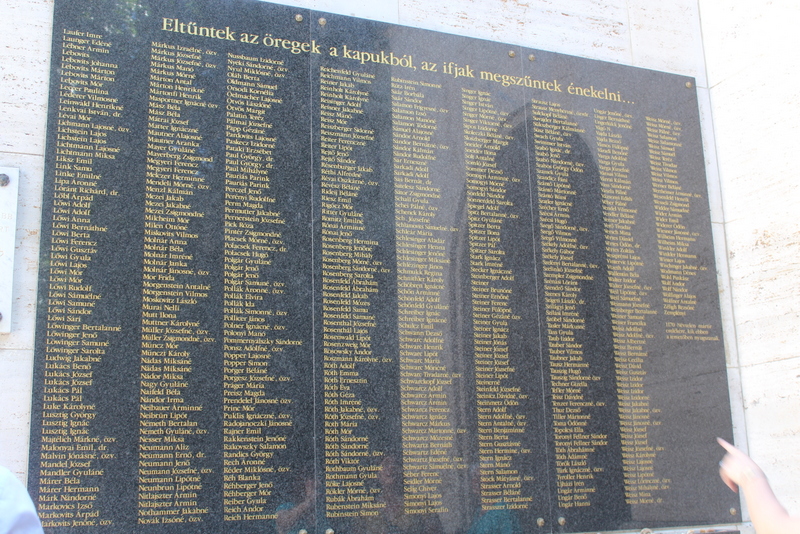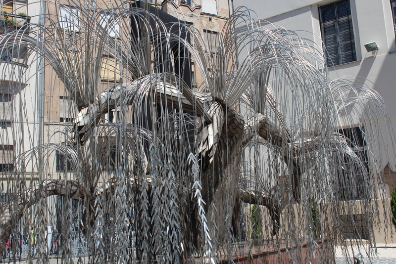 The American actor Tony Curtis gave in honor of his daughter, Jamie Lee Curtis the symbolic weeping willow, and also that of the upside down menorah, the work of sculptor Imre Varga. The silver leaves on the lightly gleaming tree bear the names of thirty thousand Jewish martyrs. The Weeping Willow stands as a reminder of the six-hundred thousand Hungarian victims of the Holocaust.