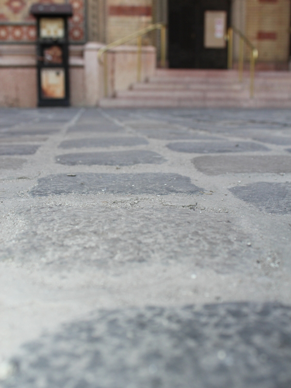 Pictures line the walkway that wraps around, and I took a photo of one, standing so that you can see the exact spot of the courtyard, then and now.
