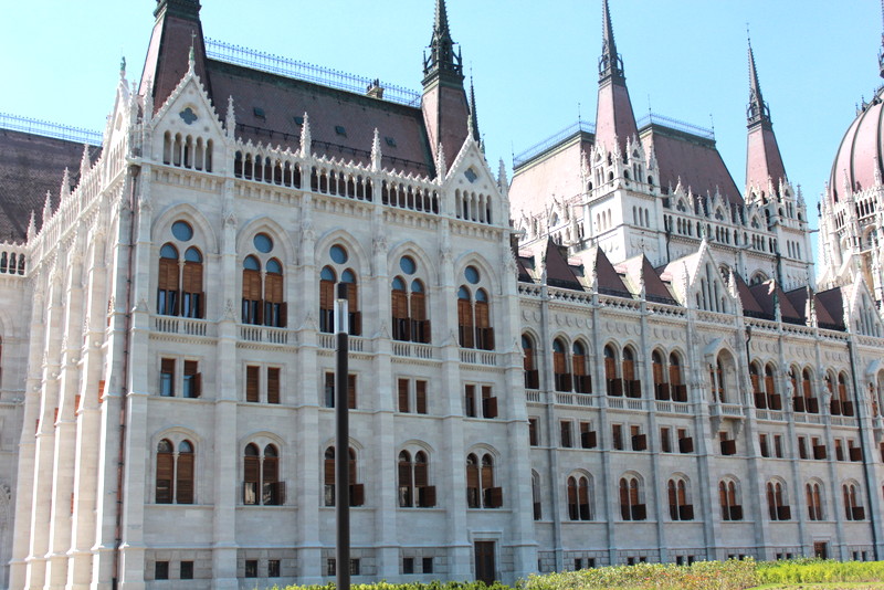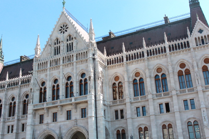 I took pictures from the back, along the side, and from the front of this striking building. The Parliament building is so grand and there was so much to take in. The Building is in the Gothic Revival style, it is 879 feet long and 404 feet wide. It’s interior includes 10 courtyards, 13 elevators, 27 gates, 29 staircases and 692 rooms. The building is 315 feet high and it is the largest building in Hungary and one of the two tallest buildings in Budapest.