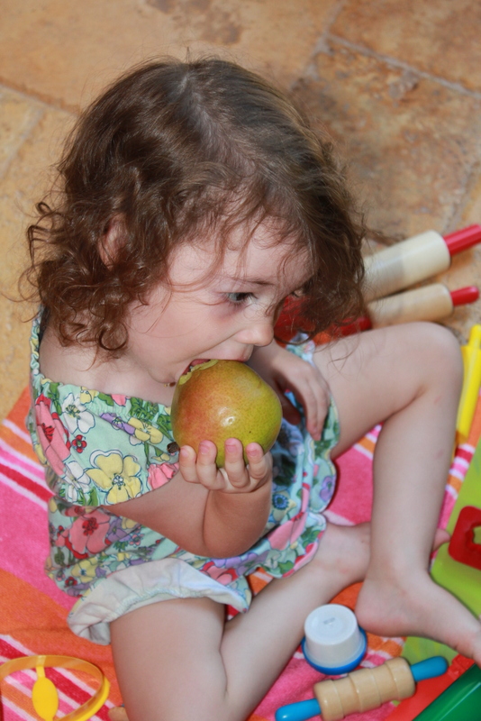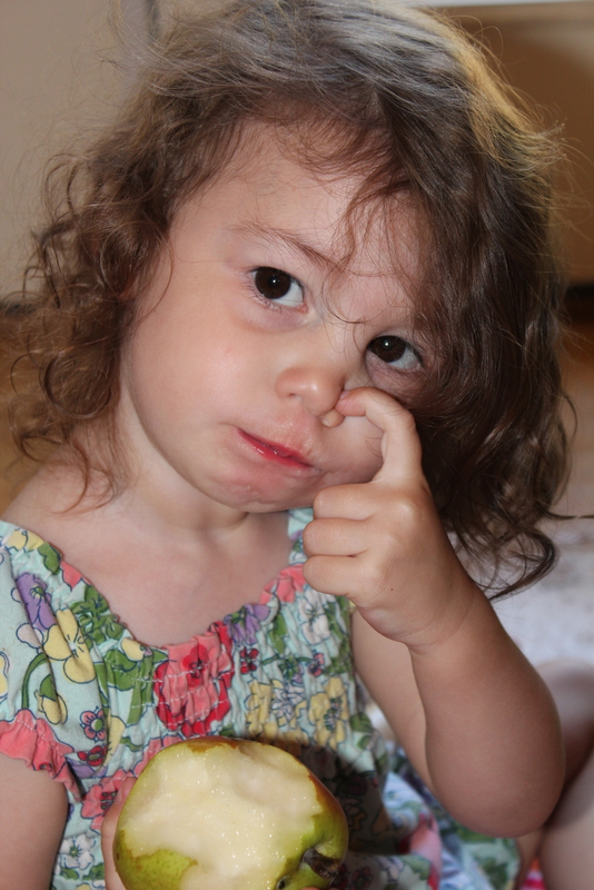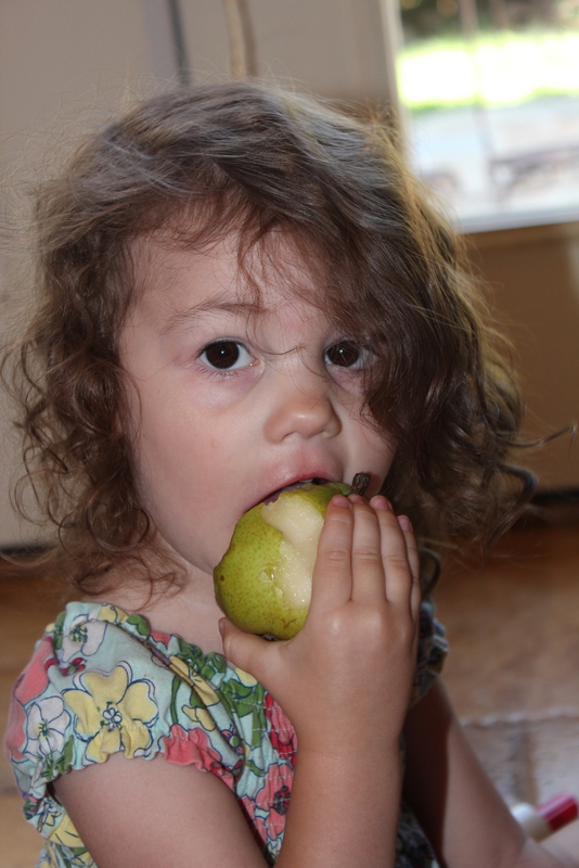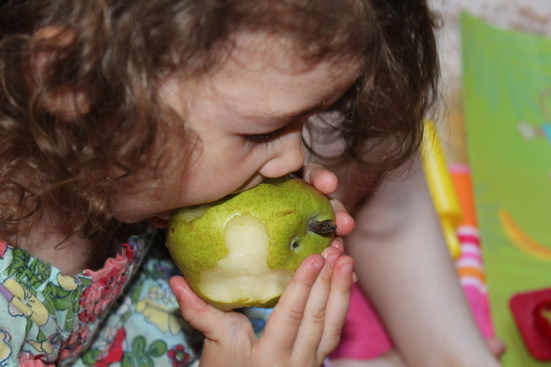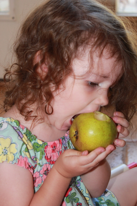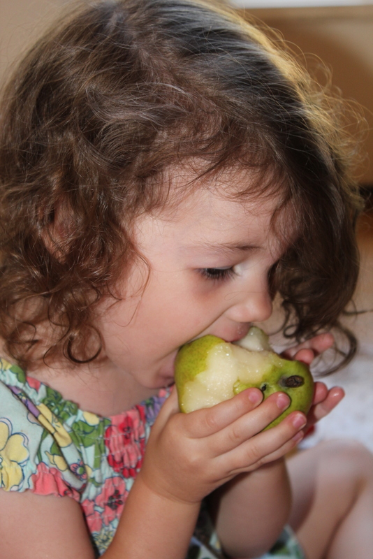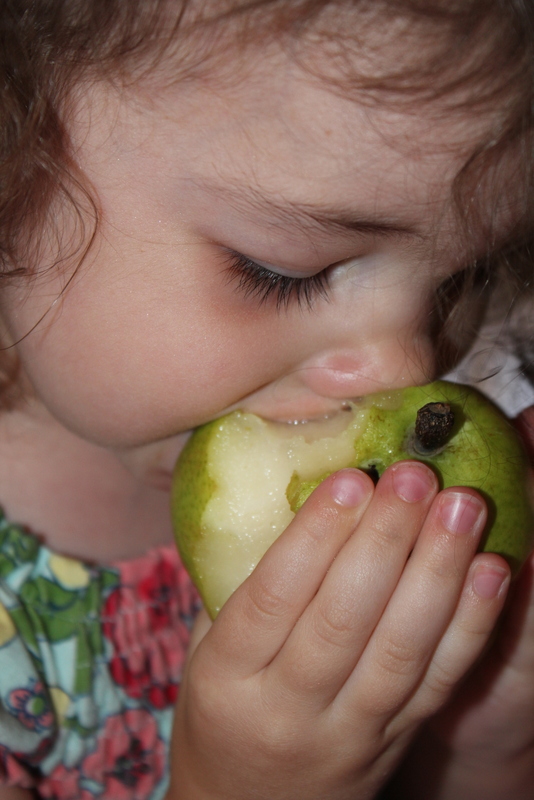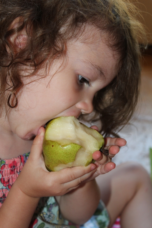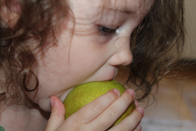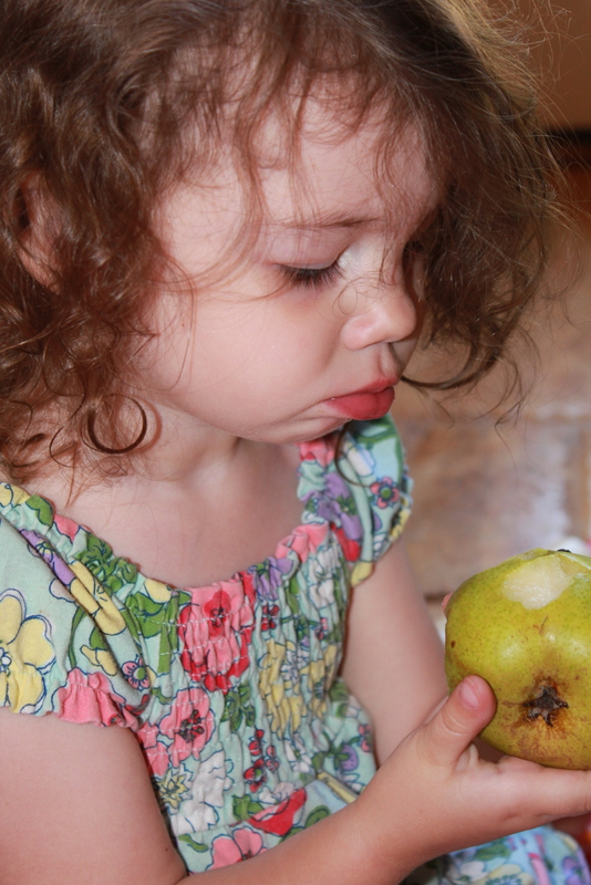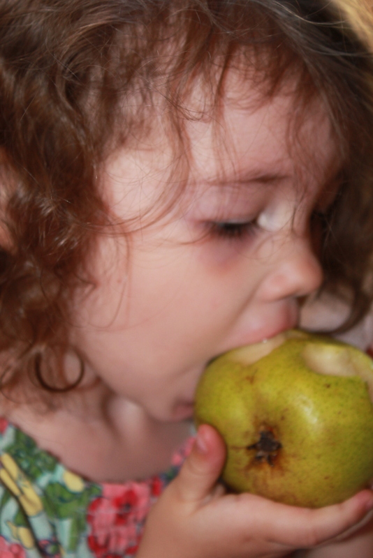 She chewed the pear slowly and I could see her thinking about it as she continued to analyse it, then she took another bite, (or in her own words, “the nother” bite.)
