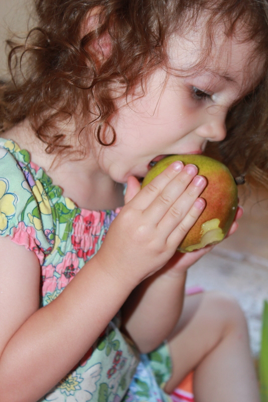 I could not contain the laughter that welled up from within my heart. I loved watching her enjoy her pear and I was snapping pictures as fast as I could, trying to capture her in this precious moment.