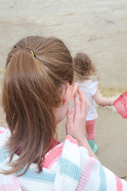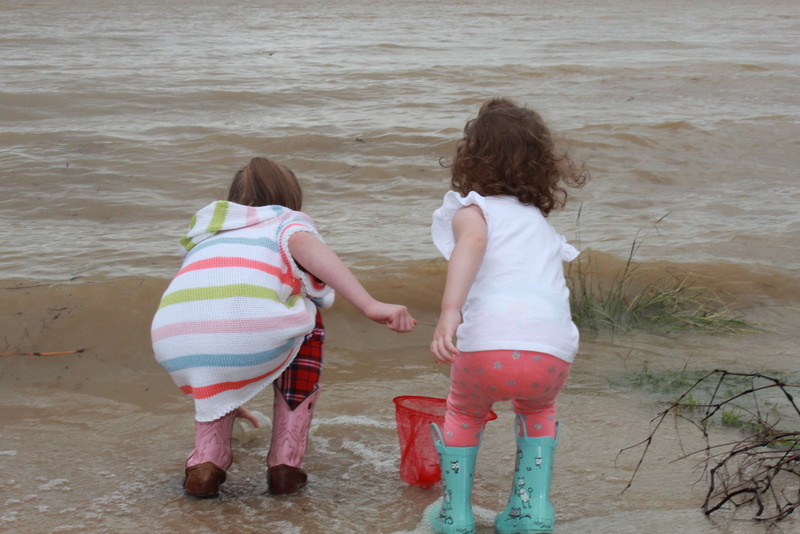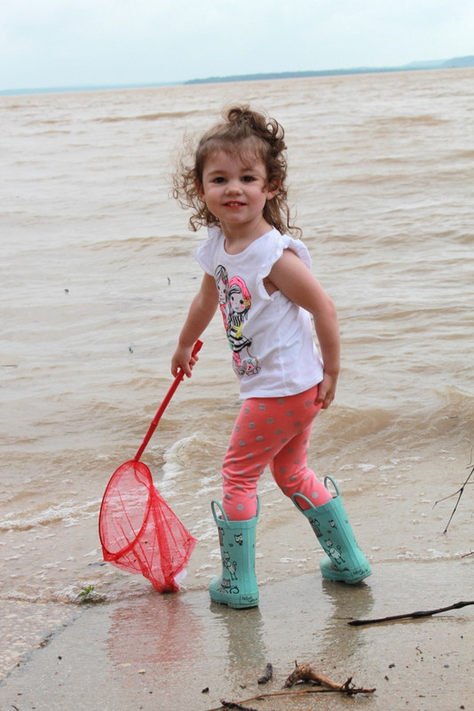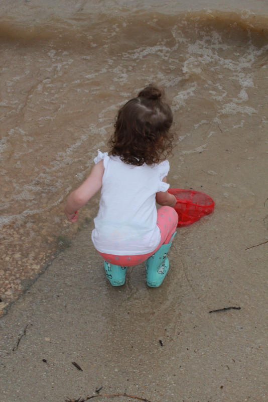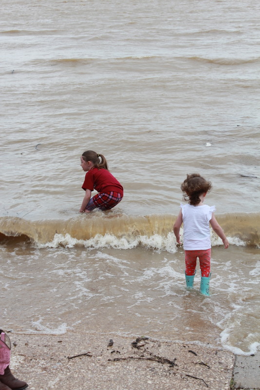 She soon had everything she needed, so both girls spent a little time wading in the lake.