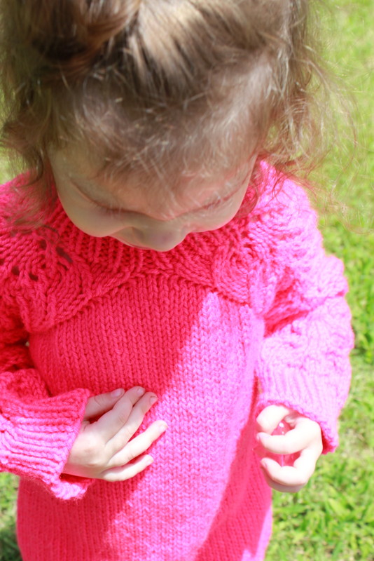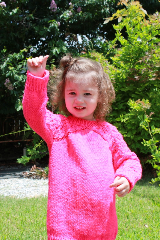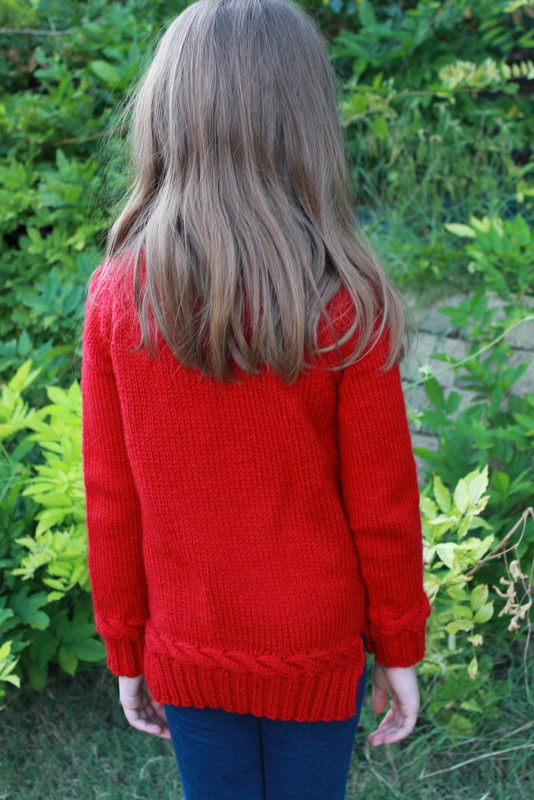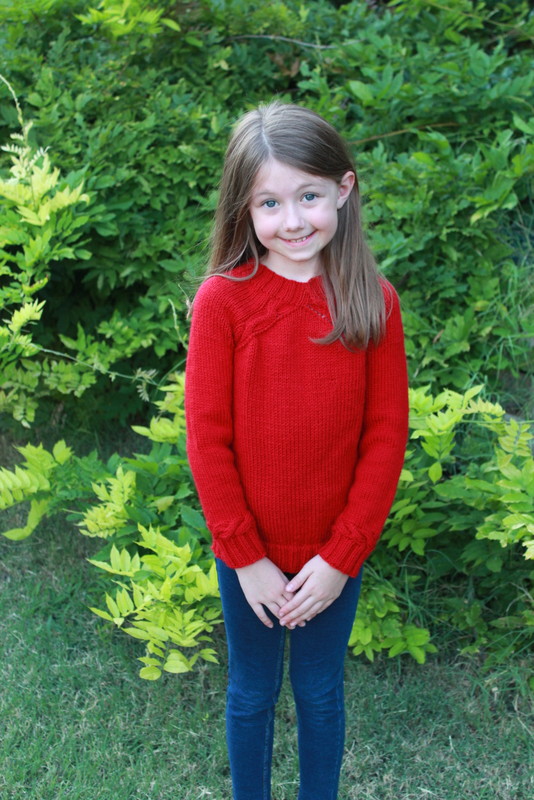 Now, I would like to say that I am a yarn snob, and I really am one in my heart, but I have to be practical when knitting for my grandchildren. I can not afford to spend $20-$30 on just one skein of yarn, especially when most patterns take several skeins. I also want them to actually wear what I knit them and it’s a little scary to wear something that you know cost a ton to make, took a long time to make, and can only be washed by hand and laid out to dry. I want them to enjoy wearing what I knit them and not worry about getting it dirty or spilling something on it. So I once again used my go-to yarn, I Love This Yarn, purchased at Hobby Lobby at just $3.66 a skein. This sweater took less than 2 skeins.