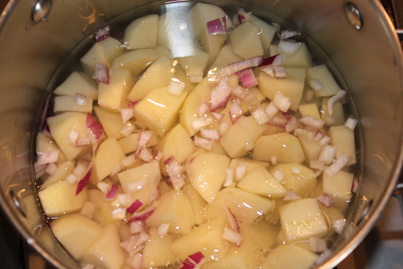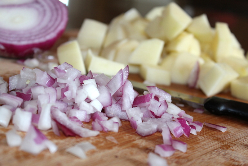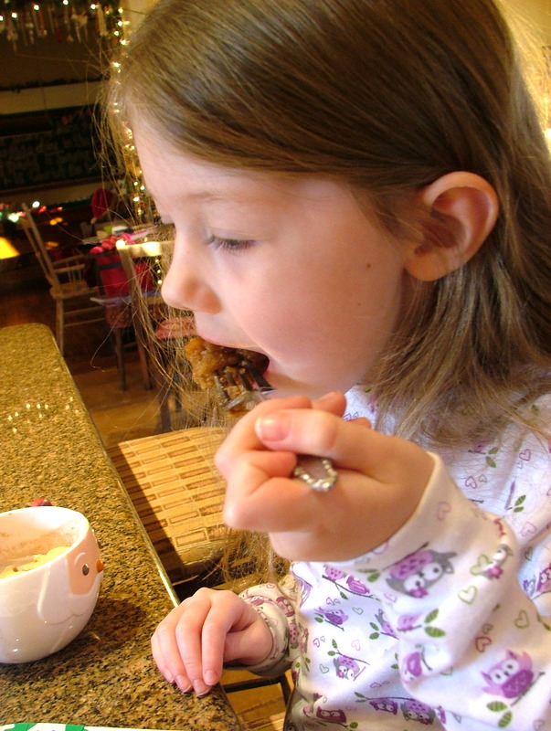 When the pork chops are brown, place them over the cinnamon beans, and sprinkle the brown sugar and clove mix over the top.