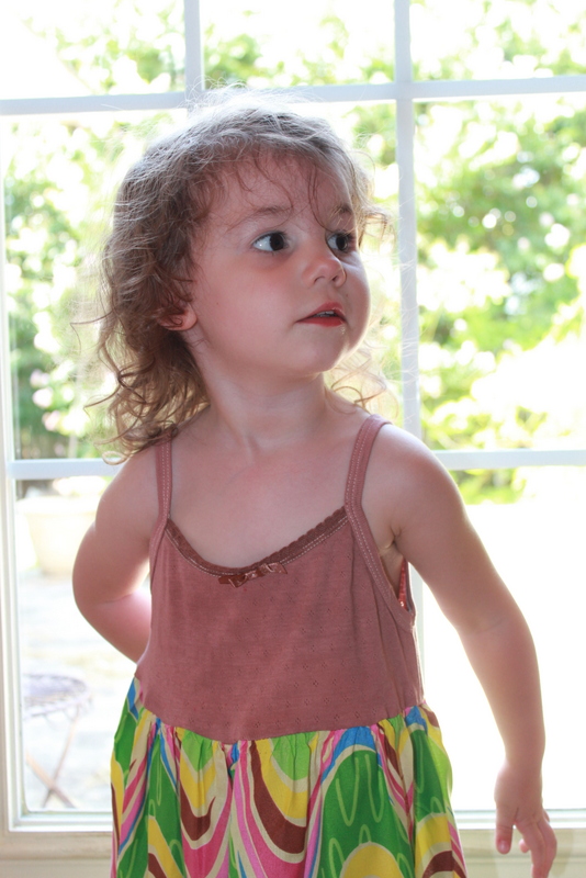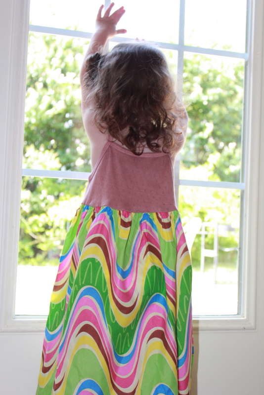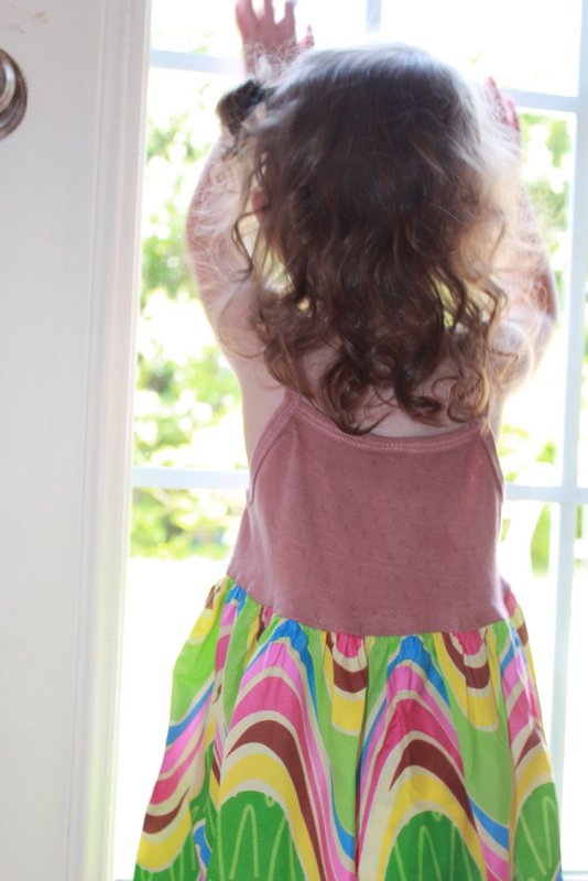 I did some adjusting; the pants on this pattern had a super high waist, even for Aria, so I had to cut that down. I also cut it a little slimmer than the pattern, since I wanted the pants to be more like leggings.