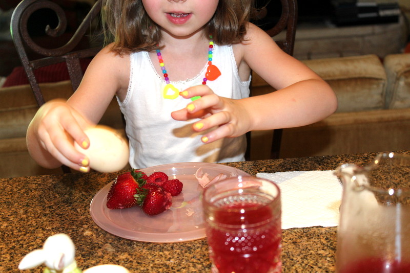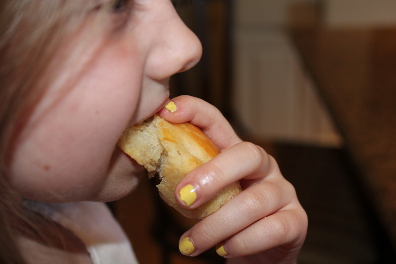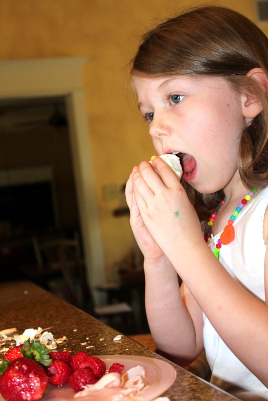 Her eating, and me reading (and taking pictures).