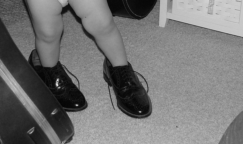 My precious daughter has always loved shoes. As a toddler she had an eagle eye for shoes; if someone took their shoes off, in a flash she had them on. It didn’t matter how big they were, she would wear them. I have these images of her growing up and the different memories involving shoes.