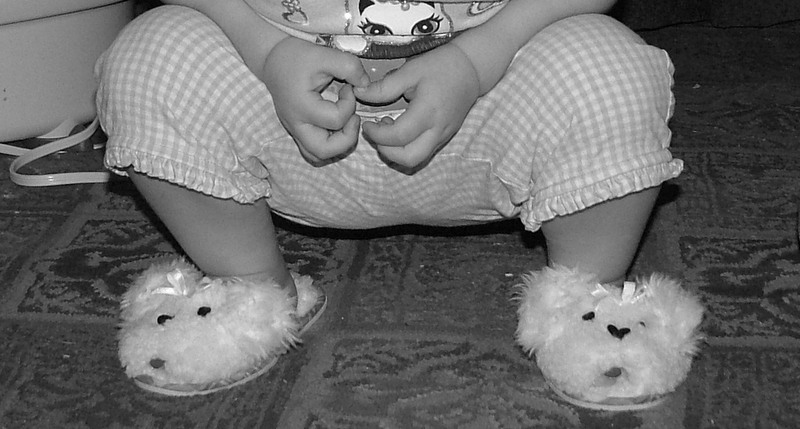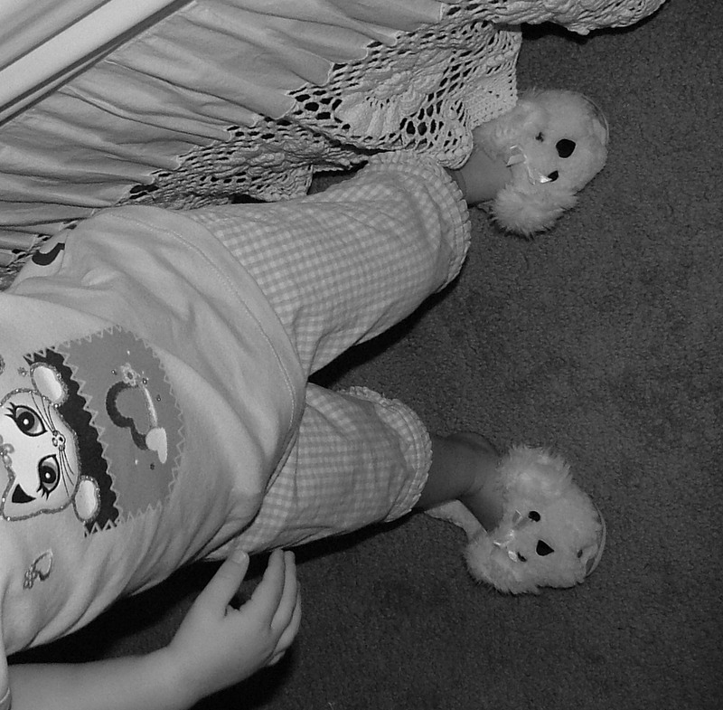And she would often times scoot across the floor, as an ice skater would glide across the ice in her mama’s over sized, fluffy slippers. . . . . .