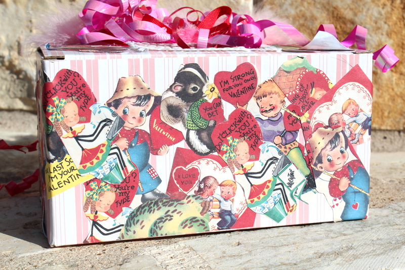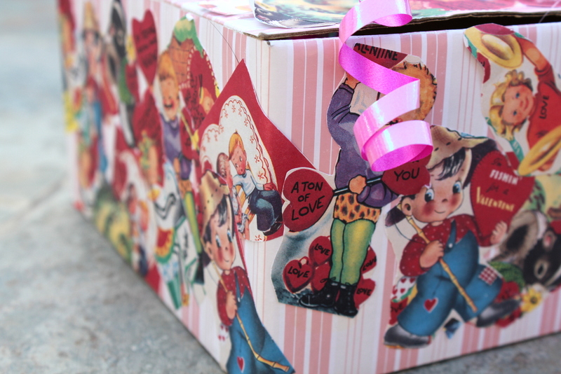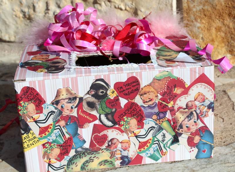 All the children had their boxes on display, lined up, side by side on the back counter. The boxes were covered with red and pink hearts, laces doilies, tissue paper and pictures of cherubs and cupids, some more elaborate than others.